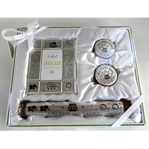 - Cudlie Noa's Ark Baby D�cor Gift Set of 4 - Frame, Tooth & Curl Keepsake Boxes and Birth Certificate Holder